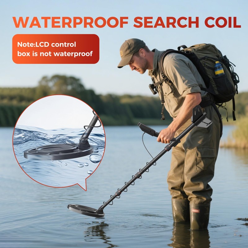 - 10” WATERPROOF COIL FOR ALL TERRAIN: Don't let water stop you! The large 10-inch search coil is waterproof, making this metal detector for adults perfect for shallow water hunting on beaches, riversides, or exploring parks in wet conditions. (Note: Control box is not waterproof).