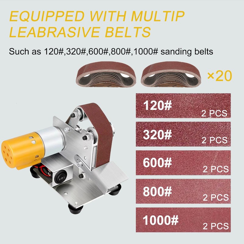 - Multi-Function: This electric belt sander has multiple functions such as grinding wheel grinding, cloth wheel grinding, and disc grinding. Equipped with grinding and polishing wheels on both sides, it can effectively grind a variety of materials such as metal, wood, jewelry, plastic resin and knives, making it ideal for home or work use