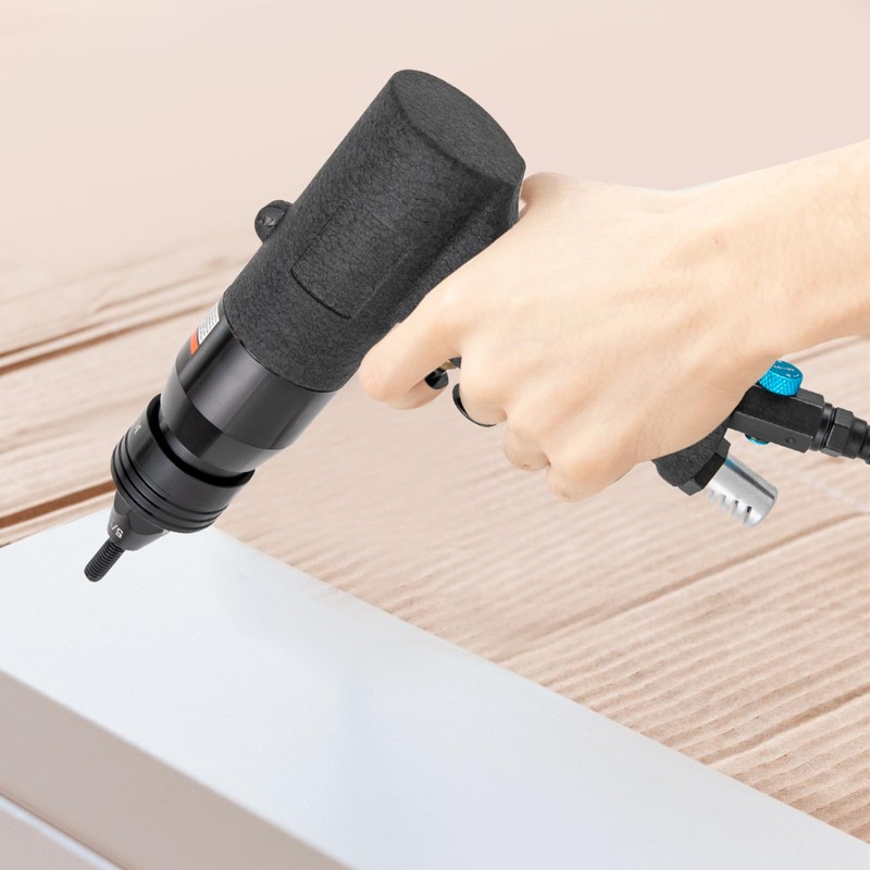 Are you tired of manual rivet tools due to their arduous task and extended working time? Say goodbye to such mundane struggles and upgrade to the efficient and effortless pneumatic rivet nut gun. It's air-powered and has powerful accessories(10-24", 1/4", 5/16", and 3/8 gun heads), which efficiently saves you valuable time and effort, making your riveting process faster. With this powerful and stylish device, you can rivet more efficiently and smoothly, transforming your workspace into a modern marvel.