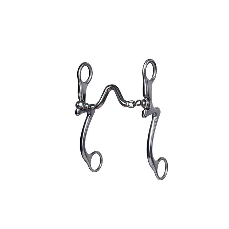 Has quite a bit of weight behind the mouthpiece, which allows a quick release from the rider’s hands. This is an excellent transition bit out of an o-ring or d-ring. Mouth: 5 ⅛” Cheek: 6 ½”