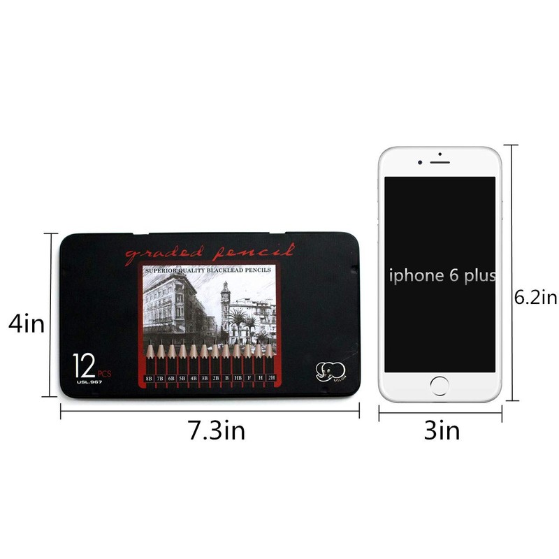 Includes 12 pencils:8B,7B,6B,5B,4B,3B,2B,B,HB,F,H,2H.