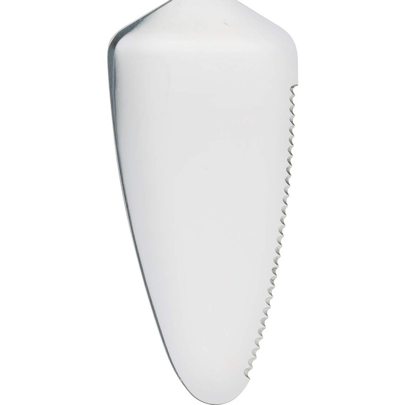 - Use the serrated edge to cut a slice, then lift it for serving with its flat edge. Its smooth handle provides control as you serve