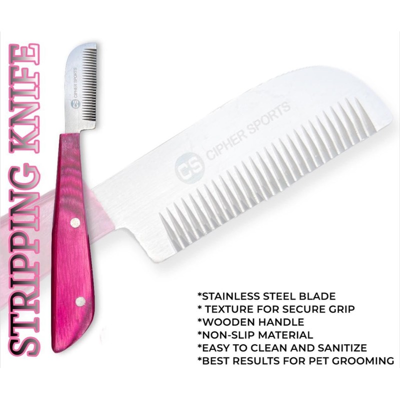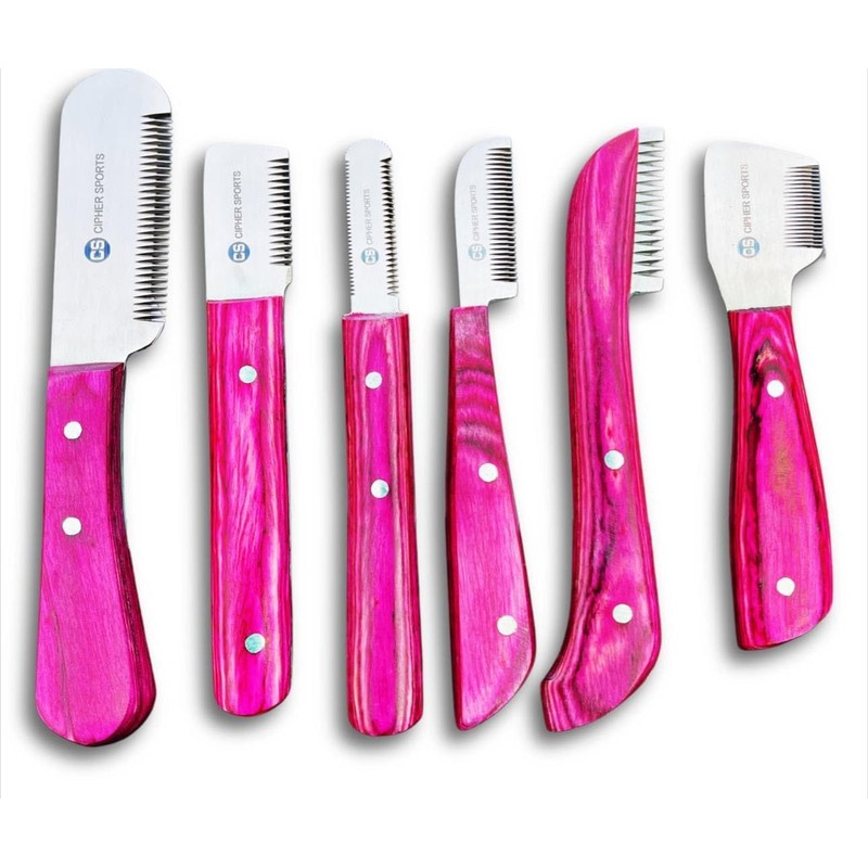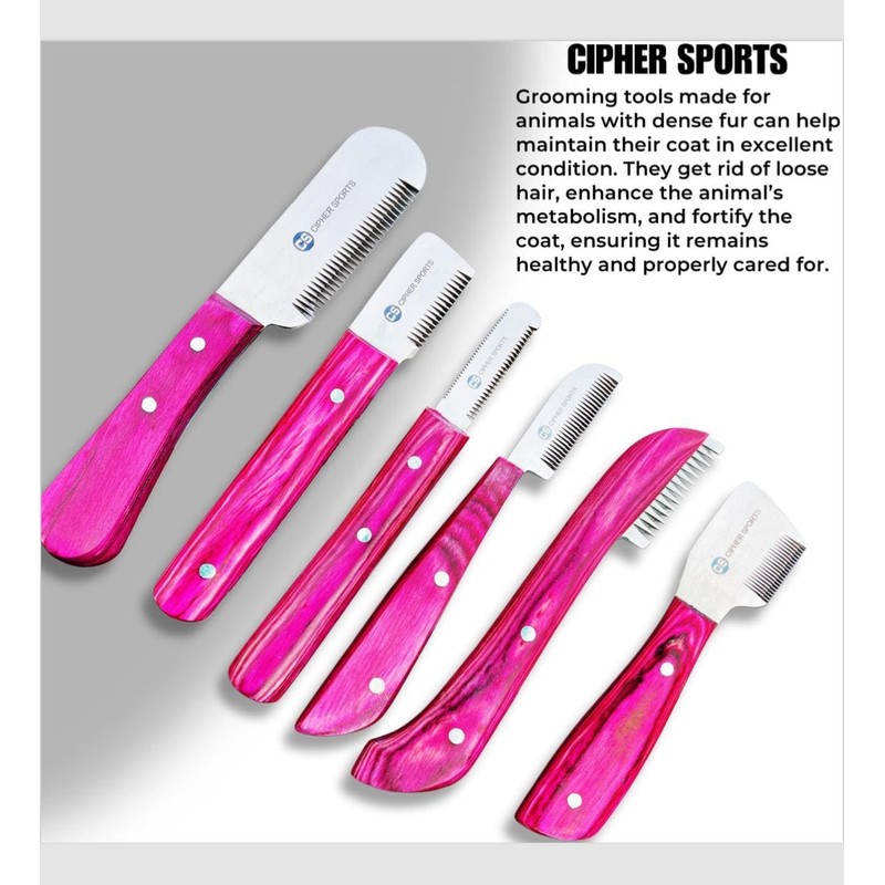 Professional Stripping Comb Kit (6-Piece Set) for Dogs & Pets with Wooden Handle Grip (Pink)