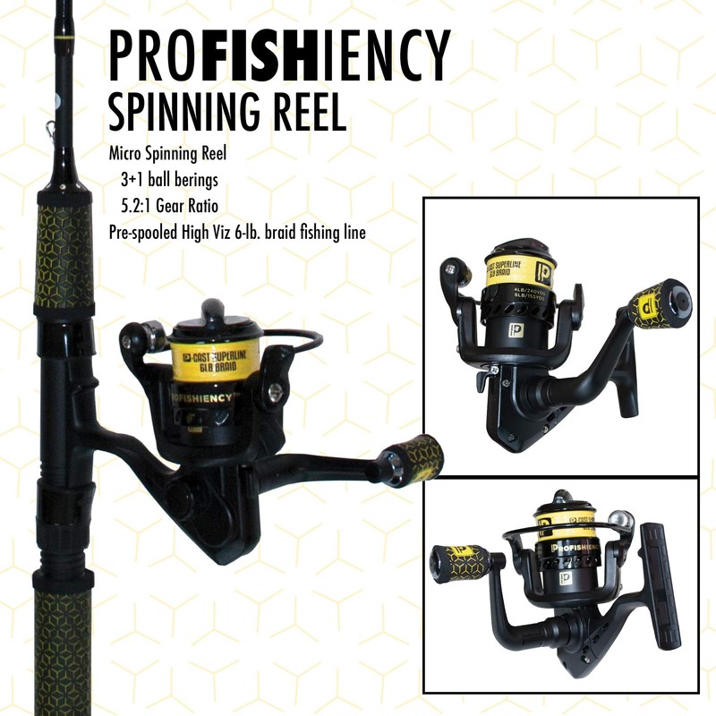ProFISHiency 5'6" Spinning Combo, IM7 Graphite Rod, Micro Spinning Reel 5.2:1 Gear Ratio, 3+1 Ball Bearing, 6lb Test Braid line, Multi, One Size (PROF56SPIN)