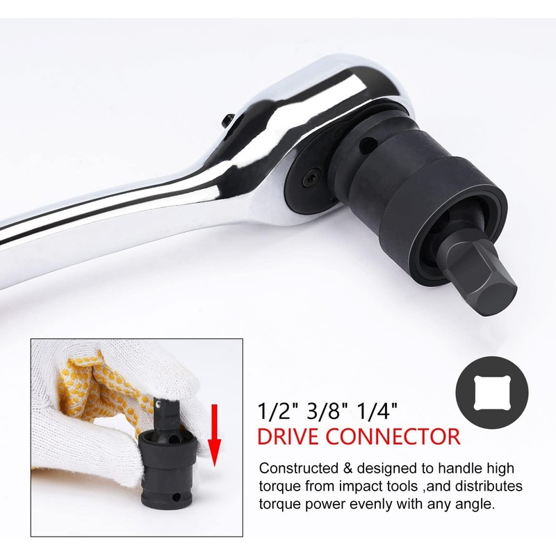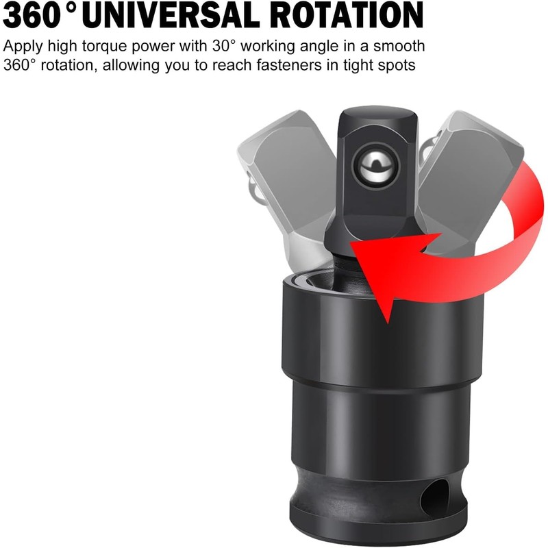 - 🌟Full 360 ° rotation: Each 1/2 "3/8" and 1/4 "U-joint can be fully rotated 360 ° at difficult to reach angles.