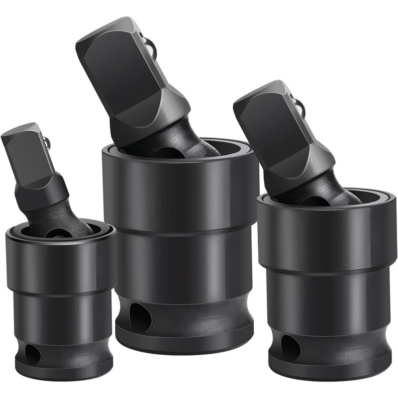 - 🌟Three sizes: The Swivel socket adapters includes three types of universal joints (sizes 1/2 inch, 3/8 inch, and 1/4 inch). Three sizes of Impact Universal Joint can meet different needs. Difficult to reach fasteners can be easily used in narrow areas or obstacles