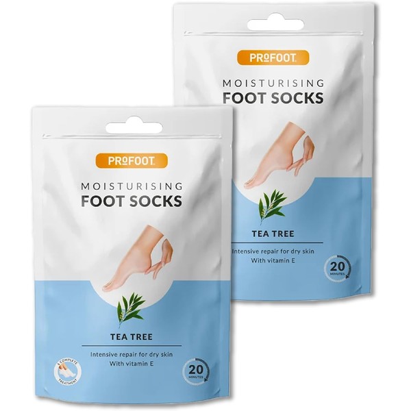 Profoot Moisturizing Foot Socks – Deep Hydrating Treatment for Dry, Cracked Heels & Skin – Intensive Repair with Vitamin E & Tea Tree – 2 Pack