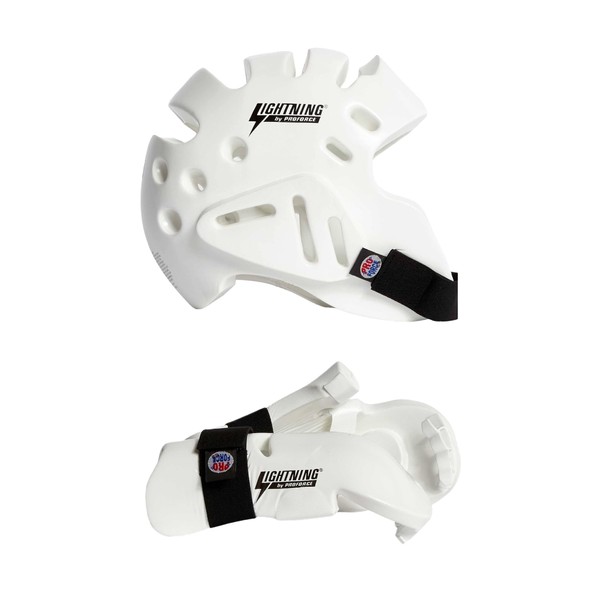 This ProForce Lightning bundle is a great start to martial arts sparring! The Lightning Headgear consists of 3/4" thick vinyl covered foam covers the forehead, top, back, and sides of head. Cutouts around the back of neck allow for mobility, cutouts around eyes allow for greater periphery vision, and the ear guard allows for normal hearing.The Lightning Gloves consist of 1/2" thick vinyl covered foam offers coverage for sparring over entire fist and wrist (including part of forearm). Cutouts around the forearm provide for better mobility and dexterity, while double layered padding at knuckles increases protection. The open palm style allows for grappling while finger slots keep the glove in place as a fist is made.Both fasten with an elastic strap that secures with a hook-and-loop closure, and provide excellent protection and mobility!