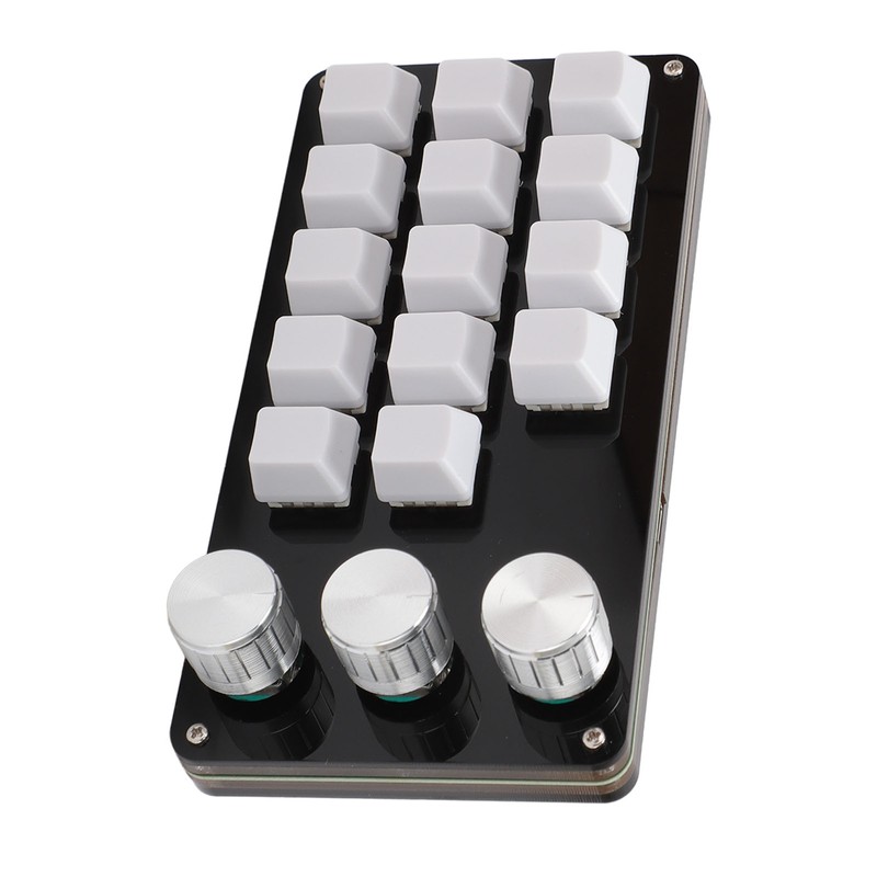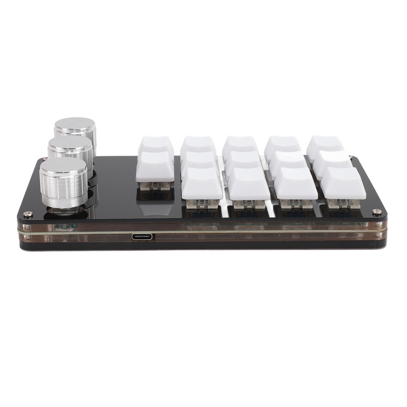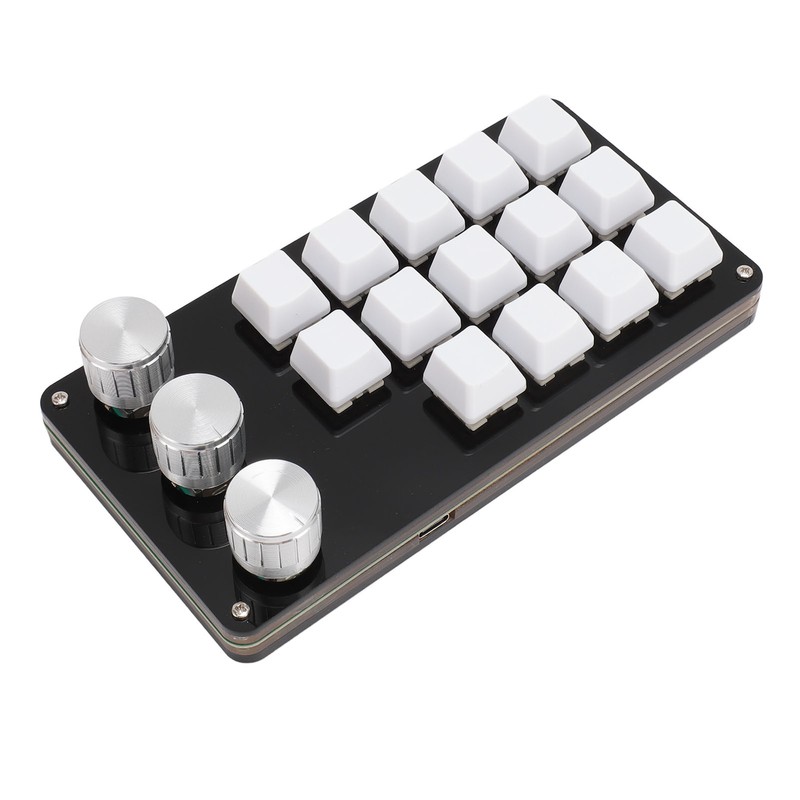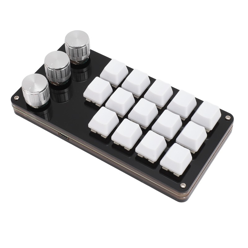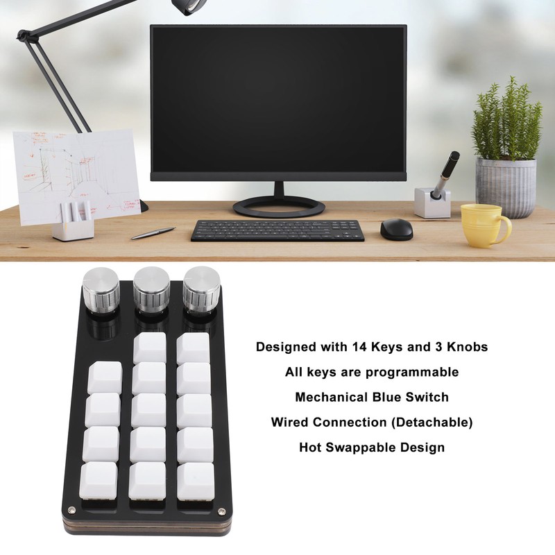 1、14 Keys and 3 Knobs: This mini custom keypad is designed with 14 keys and 3 knobs. You can set all keys function and quick commands according to your needs for improving working and gaming efficiency. 2、Blue Switch: This programmable keypad adopts blue switch, which is ideal for office, games, music, media, industrial control, laboratory, production line testing and other fields. 3、Multi Function: This programmable keypad is suitable for office, shortcut keys can help you achieve quick copy, paste, volume control and other functions, but also suitable for gaming, programmable keys can be used for game operation, giving you a smoother gaming experience. 4、Hot Swappable: This gaming keypad uses hot swappable technology, allowing users to replace the keycaps or switch and DIY the mechanical keyboard you want at any time, offering great convenience. 5、Separate Design: This macro keypad adopts USB wired connection and comes with 1 meter / 3.3ft long USB cable(detachable), so that users can arrange the cable more flexibly.
