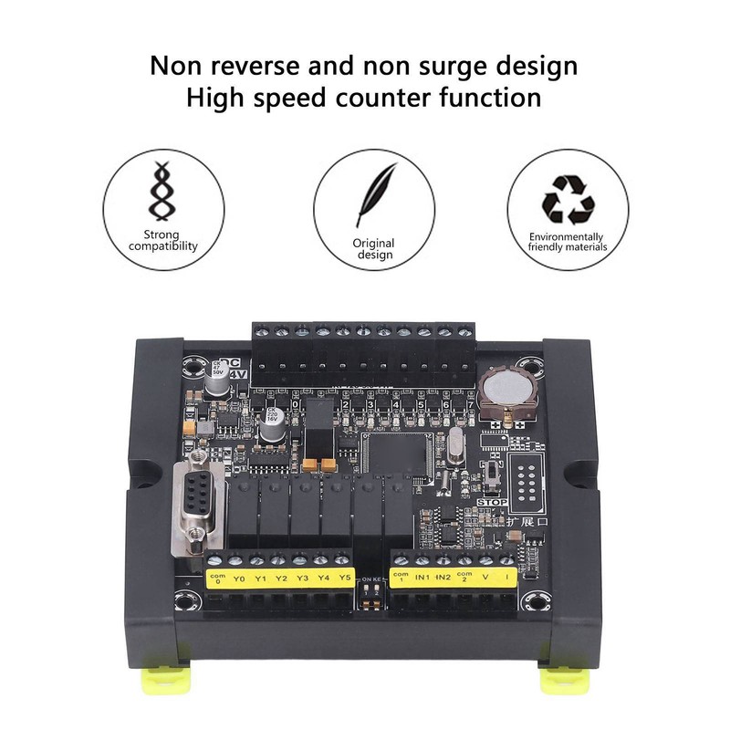 1、HIGH SPEED COUNT: The power supply circuit adopts non reverse and non surge design, with own analog input and output channels, with high speed counter function 2、CONVENIENT POSITIVE OR NEGATIVE TRIGGERING: All IO ports use photoelectric isolation to transmit signals, effectively filtering out various interferences, and the input supports positive or negative triggering, which is convenient to use 3、PROGRAMMING FUNCTION: Compatible with most commands of for Mitsubishi FX3U, support programming through for GXWorks2 or for GXDeveloper; comes with independent upload and download programming interface 4、ACQUIRE AND CONTROL SIGNAL: MCU adopts for ARM32 bit industrial processor, a small PLC suitable for industrial automation applications, and is widely used in signal acquisition and control of industrial field equipment 5、CURRENT OR VOLTAGE ANALOG INPUT: Single phase is 4 channels 100K, 2 channels 40K, AB phase is 2 channels. Analog input support current type and voltage type