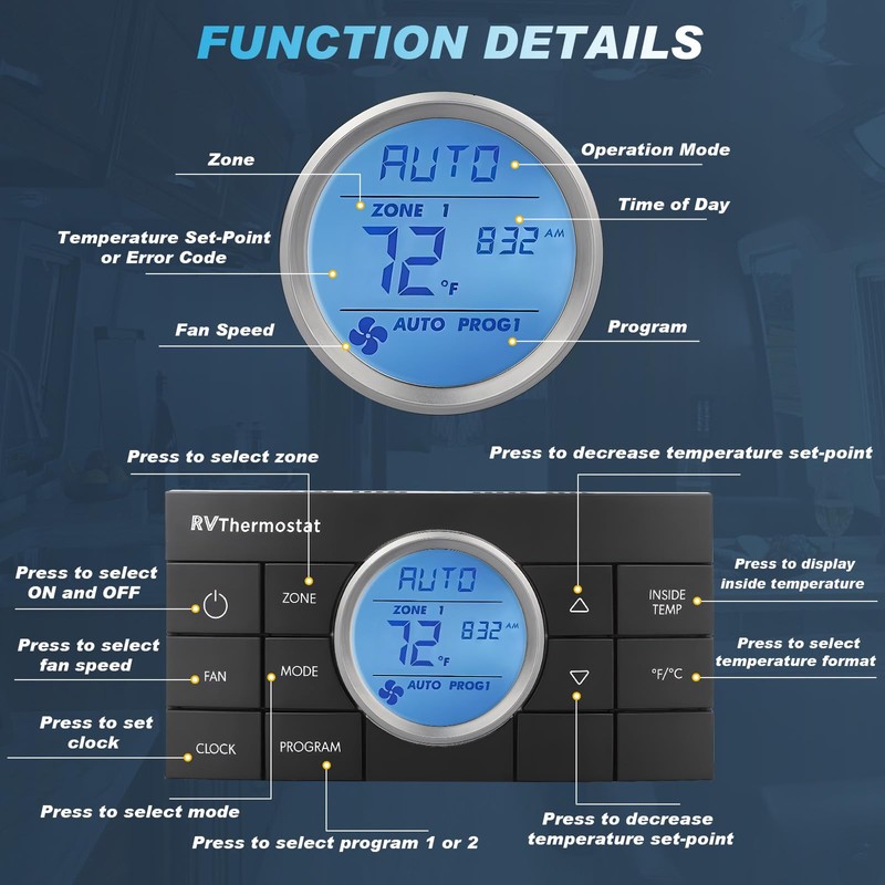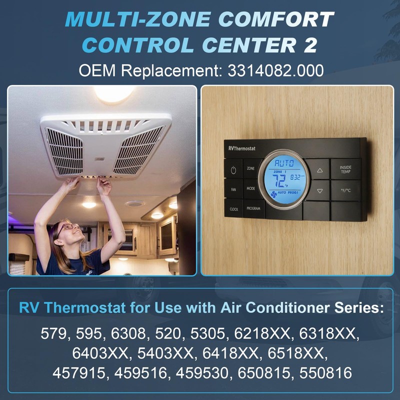 SEEBEEBUS Programmable RV Thermostat for Dometic AC Series 579 595 6308 520 5305 6218XX 6318XX 6403XX 5403XX | Multi-Zone Comfort Control Center 2 | OEM Replacement 3314082.000 | 4-Zone Control(Black)