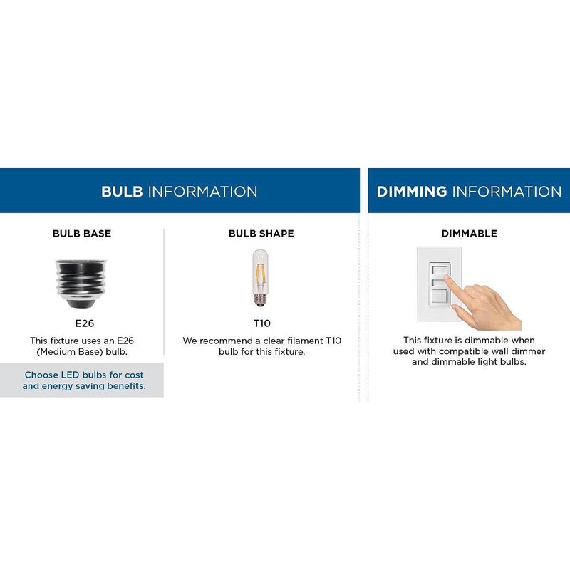 - DIMENSIONS AND BULBS: The fixture measures 17.75-in. H x 7.25-in. W, extends 3.875-in. (note: dimensions are without light bulbs) and uses (2) 60-Watt maximum medium base bulbs, or LED equivalent. Dimmable when used in conjunction with dimmable bulbs.