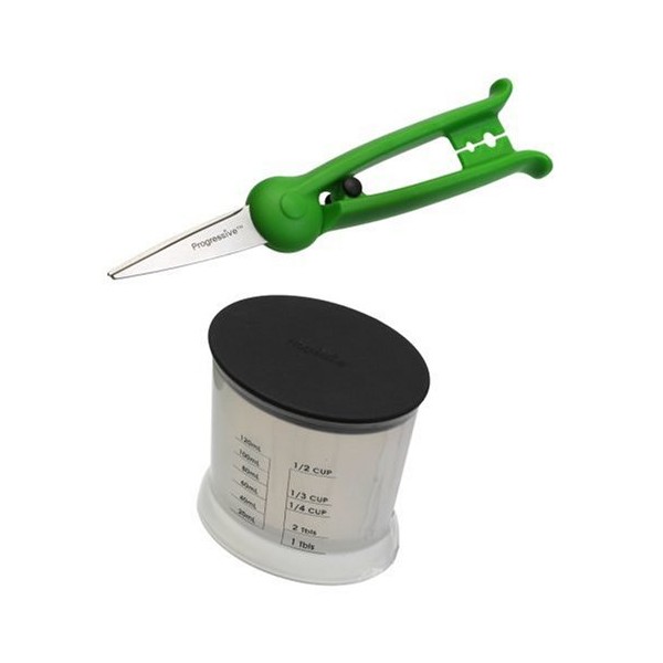 - Set includes: stainless steel herb shear, measuring cup and lid