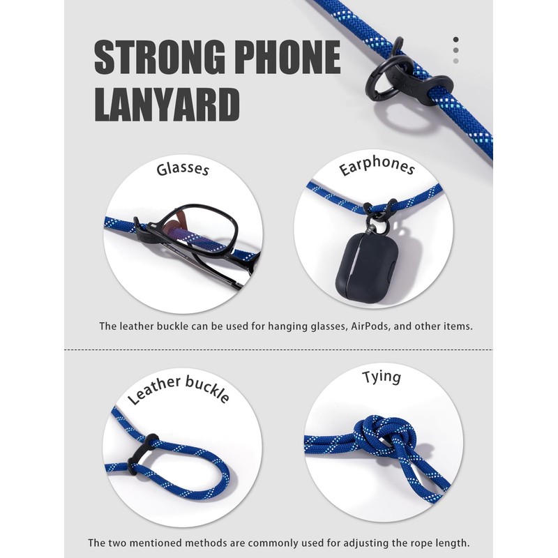 - 【HIGH QUALITY STRAP FOR MULTIPURPOSE】The phone lanyard features low stretch and abrasion resistance, ensuring durability and reliability. This versatile high-quality phone lanyard is perfect for both indoor and outdoor use. It comes with a rust-proof metal hook to securely attach your phone, keys, ID badges, wallet, and other accessories.