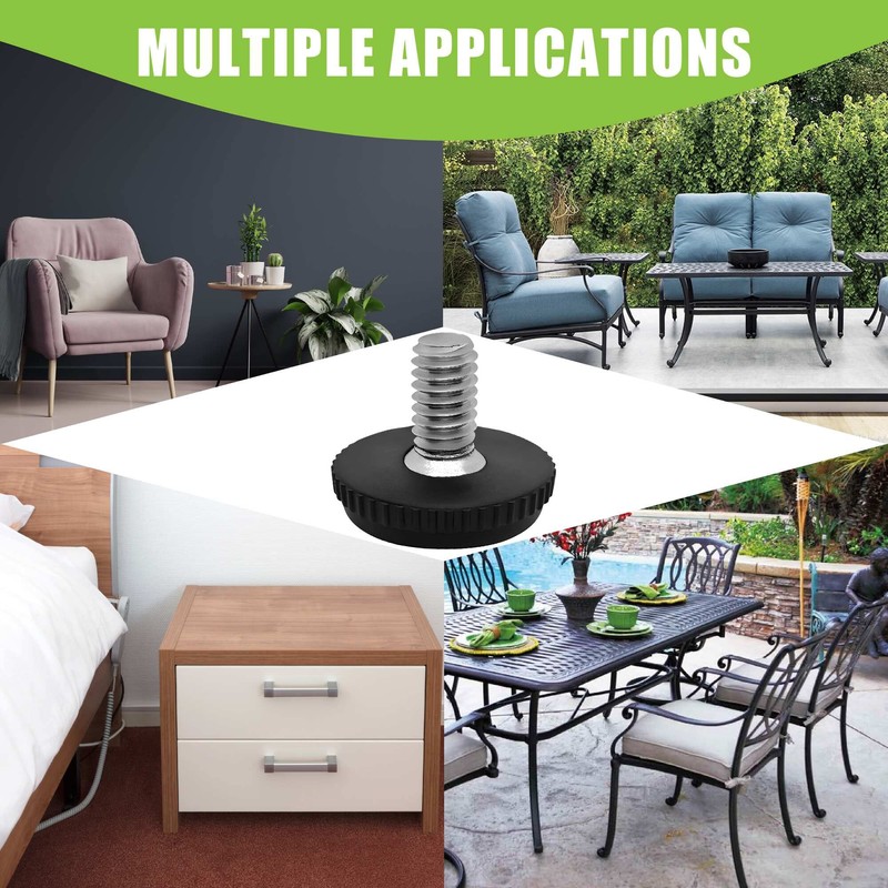- These 5/16-18 stainless steel adjustable furniture feet fit most American furniture brands. Most imported brands use metric-sized furniture leveling feet such as 8mm x 1.25.