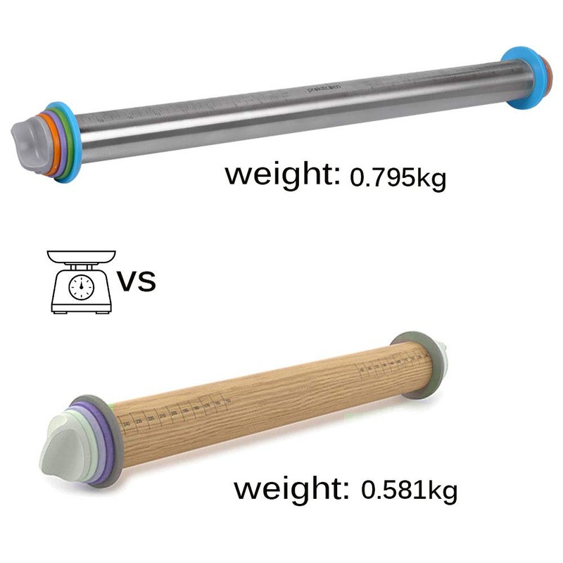- ACCURATE MEASURING & MEET VARIOUS BAKING NEED--- Measurement on each end of roller pin will measure precise length and width of dough . 2mm 4mm 6mm 10mm colorful rings will roll out a desired thickness meet different baking need.