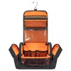 - WELL ORGANIZED: Roomy main compartment with 5 elastic pouches and 2 zipper pockets to keep your shampoo, razor, skin care products organized and tidy. The interior height of 9.2 inches allows to place bottles vertically. Bright orange lining for easy to find what you need at a glance.