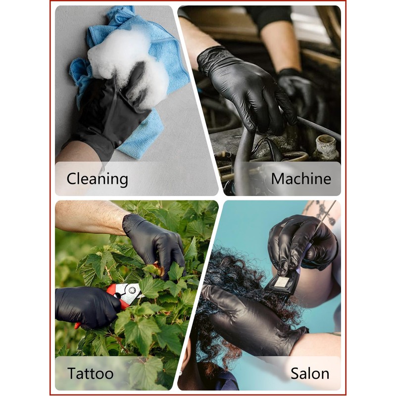 - 【ENDURING AND COMFORTABLE】Black gloves has been upgraded to 4 mil,suitable thickness,gloves have good thin and flexible, give me enough sensitiveity to handle many things.
