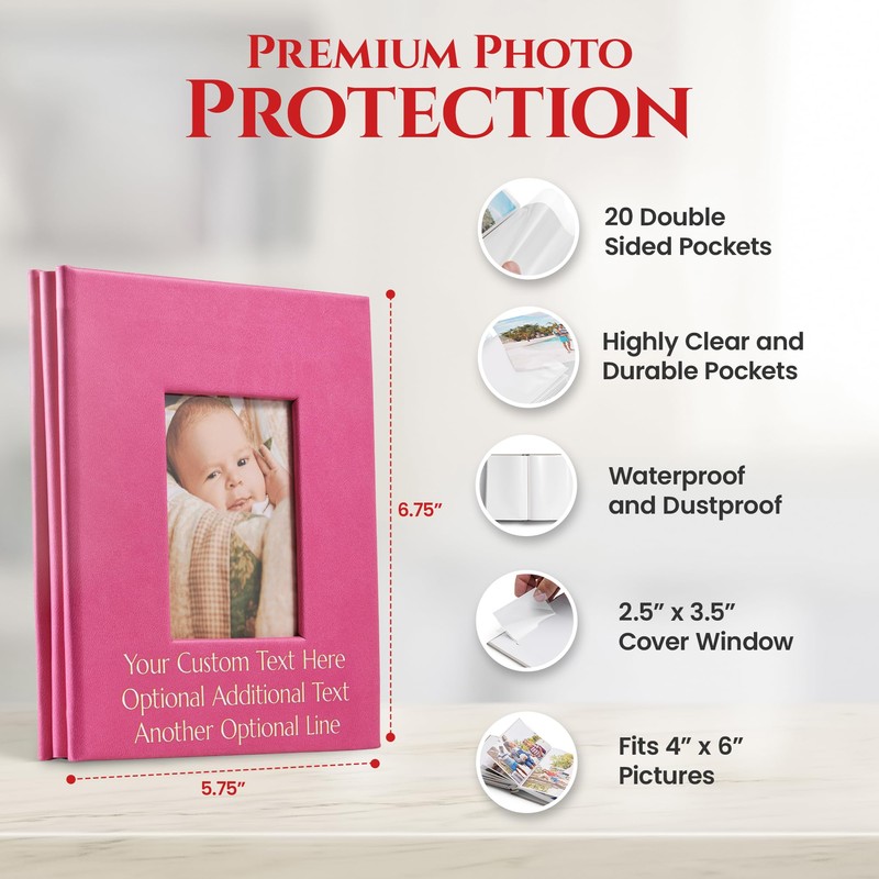Promot PROMOT Personalized 4x6 Photo Album - Holds 40 Photos - Stylish Pink Hardcover Design with Easy Slip-In Pockets - Durable Memory Book for Storing and Displaying Family Photos, Keepsake small Album
