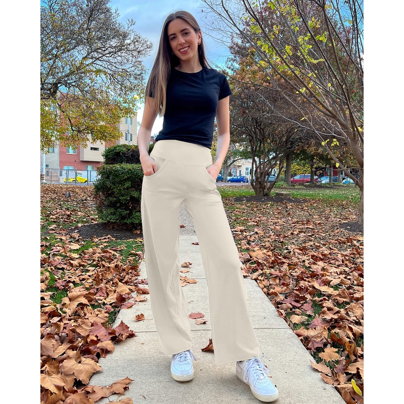 Promover Yoga Pants Women Wide Leg Sweatpants Flare Leggings Casual Outfits Skin Friendly Lounge Pants High Rised Moisture Wicking Athletic Gym(Ivory,S,31")