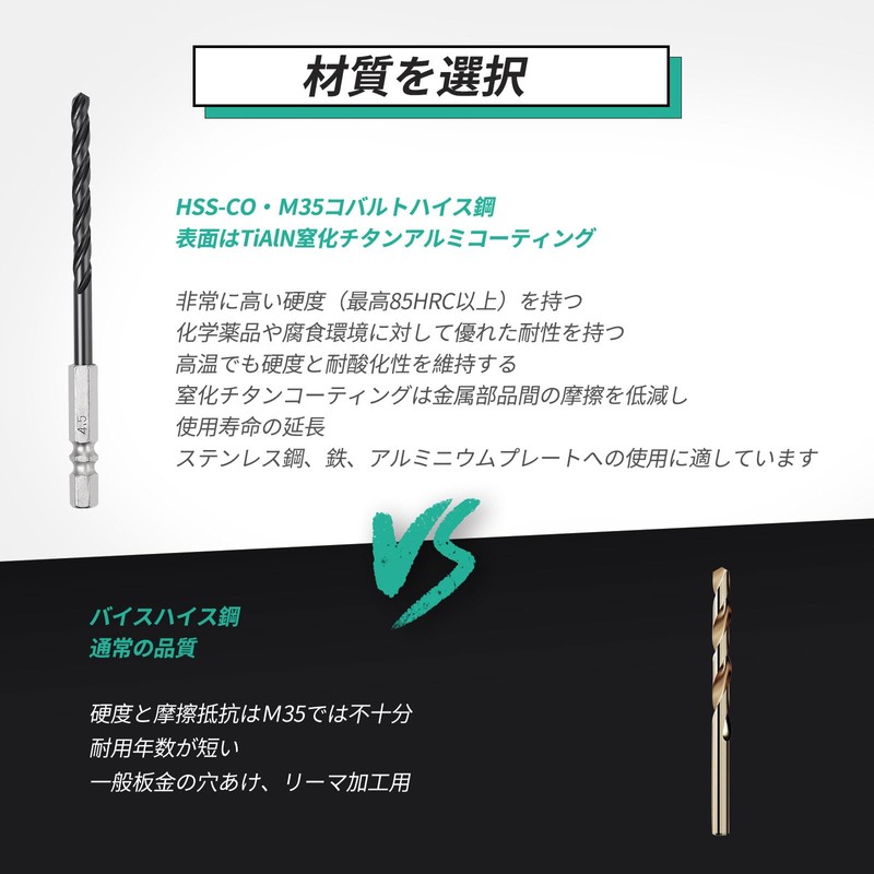 - Compatible with various occasions: Special stainless steel model (SUS304, etc.) Of course, light metals, wood, iron, bamboo, plastic, resin, acrylic, etc. Also recommended for precise drilling of plastic models; electric drill, charging drill screwdriver, electric impact screwdriver, drill machine. The size uses a highly versatile 0.25 inch (6.35 mm) hex shaft