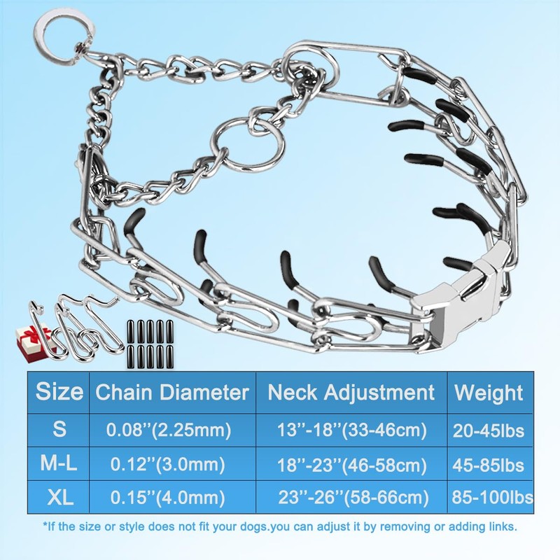 Prong Dog Training Collar, Adjustable Dog Pinch Collar with Quick Release Buckle for Small Medium Large Dogs, Extra Link and Caps