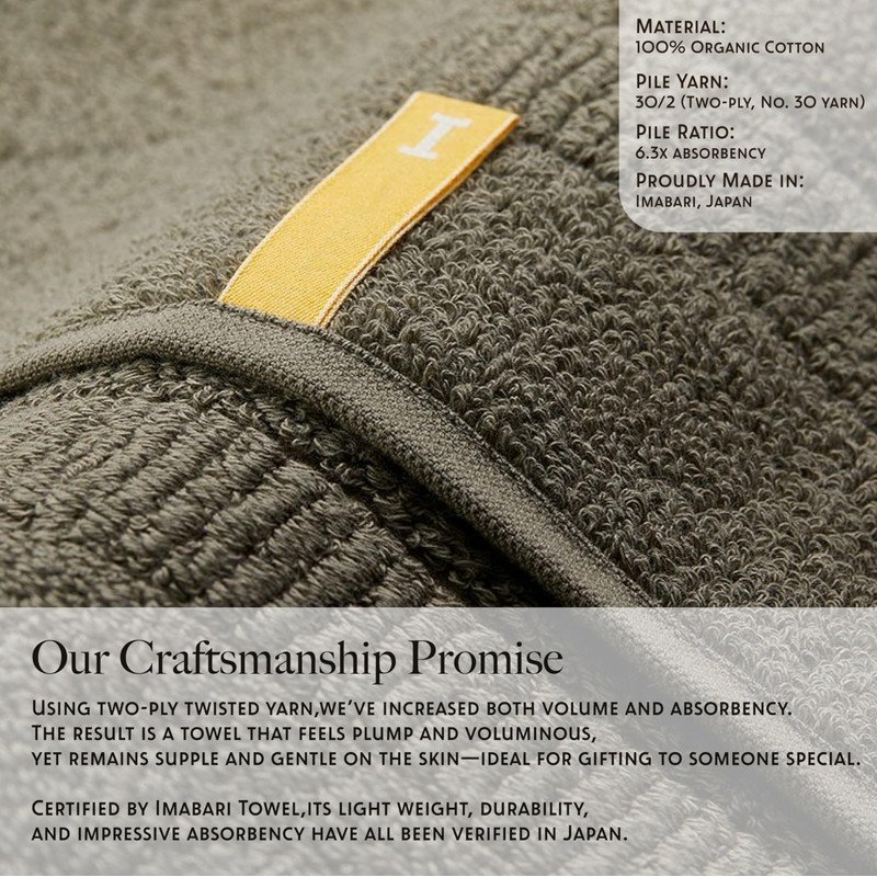 【Proof of Purity】 Bath Towel, 28 x 53 inch, 100% Organic Cotton, OliveGreen(Marked as Dark Gray),Double-Ply Yarn 30/2, Oeko-Tex Class 1, Loop-Dense, Made in Japan,Pack of 2