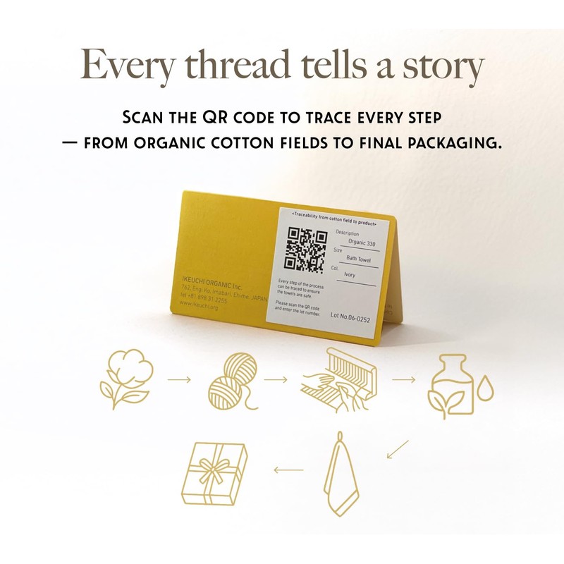 - At IKEUCHI ORGANIC, we use premium organic cotton certified by GOTS (Global Organic Textile Standard) through the bioRe Project. Cultivated without pesticides or chemical fertilizers, this cotton ensures sustainability and strict adherence to ethical and environmental practices. Every step, from farming to delivery, complies with GOTS standards, guaranteeing purity and quality.