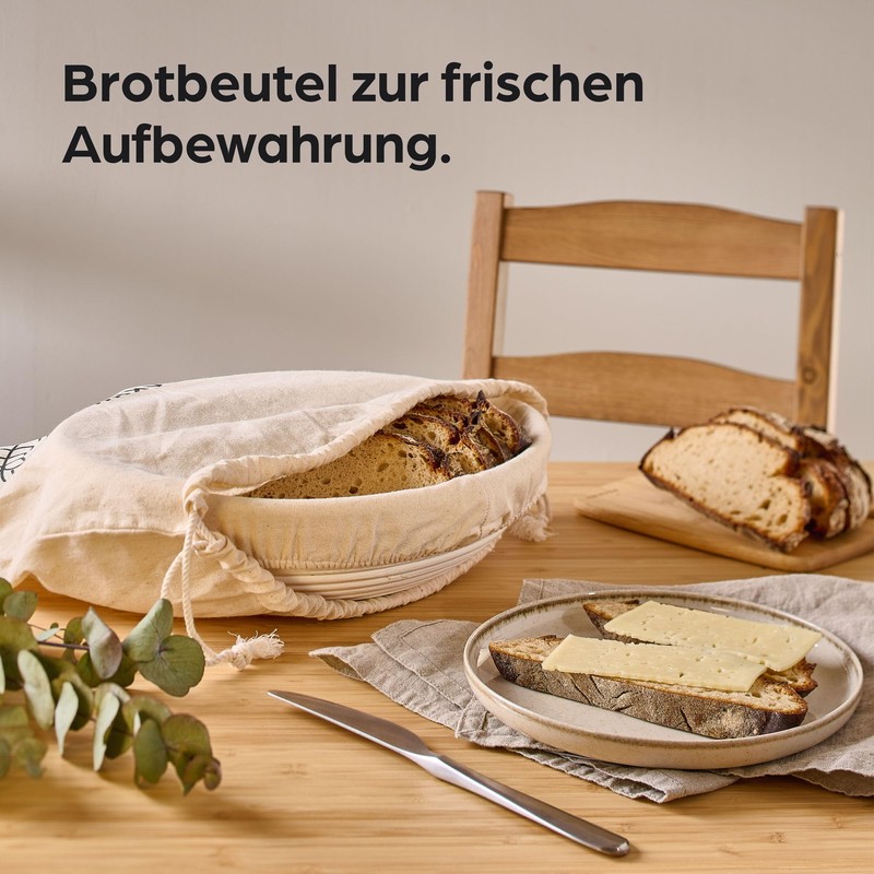 • The ultimate proofing basket set: with 100% rattan proofing basket, linen cotton insert, brush and bread bag - a dream for bread lovers and unique baking fun!