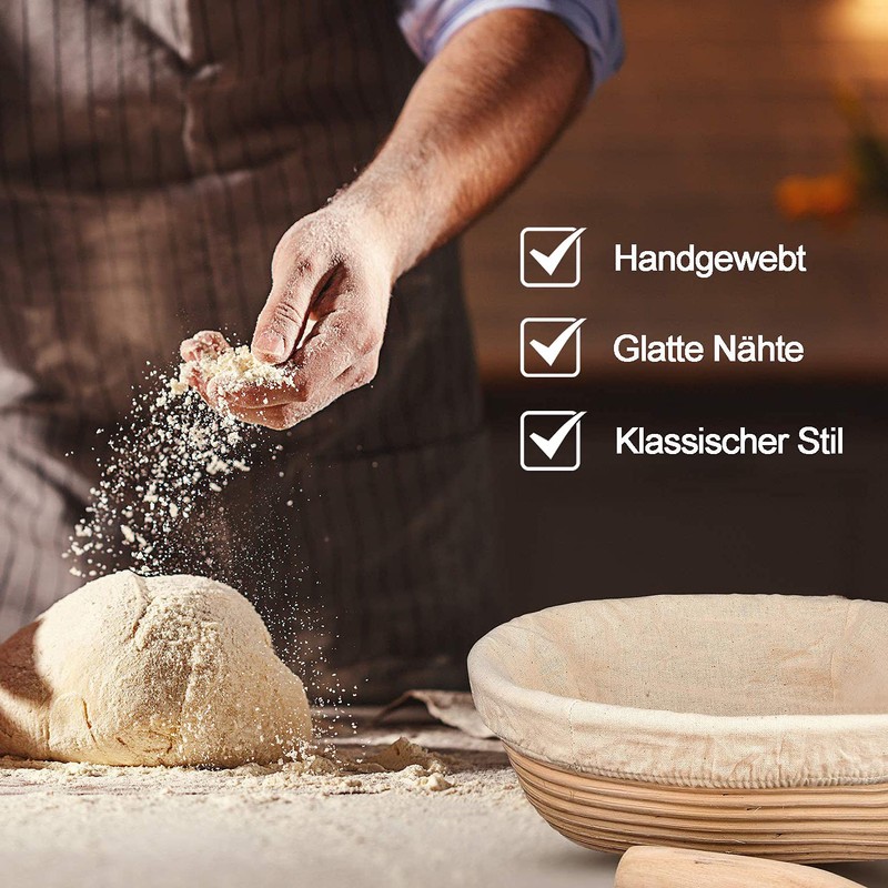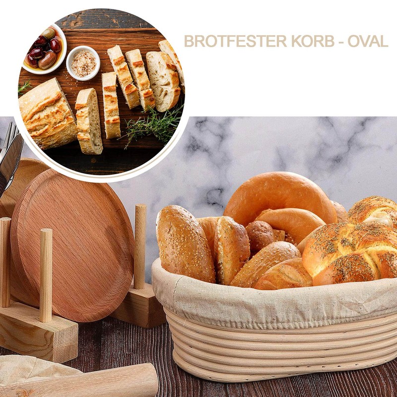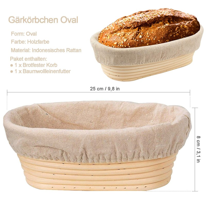 Proofing Basket Oval Diameter 25 cm Handmade Rattan Bread Basket with Linen Insert Height 8 cm Holds 500-750 g Dough