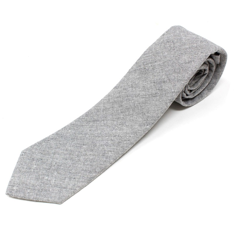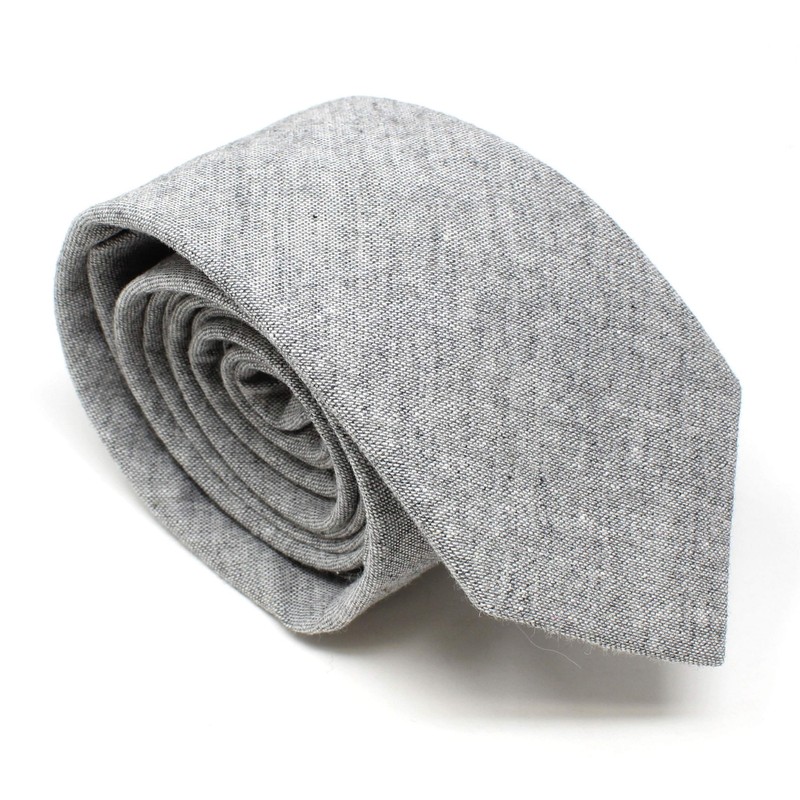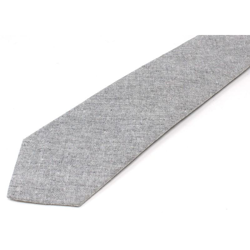 Proper Materials Men's Chambray Cotton Skinny Necktie Tie Textured Distressed Style - 04v2 - Grey