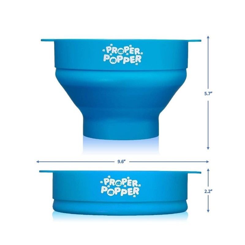 - Lightweight & Easy To Clean & Store- You can easily collapse the bowl from a height of 5.7 to 2.2 allowing the bowl to fit in almost any kitchen drawer or pantry. Perfect for college dorms. The slim, lightweight and collapsible design makes it great for traveling or limited pantry space. The Proper Popper is super durable, eco-friendly and dishwasher safe. It's made of high quality silicone which makes it easy to hand wash. Save yourself the trouble of rough scrubbing other popcorn makers.