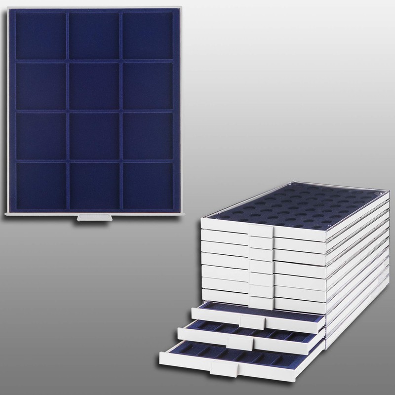 Prophila Coin Box Gray 12 Angular compartments for Coins up to 66 mm, Blue Insert
