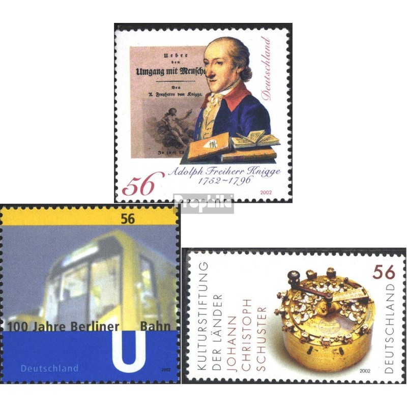 Prophila Collection BRD (BR.Deutschland) 2241, 2242, 2243 (complete edition) stamped 2002 Knigge, underground, calculating machine (stamps for collectors) railway/cable car