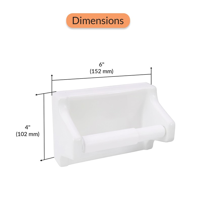 The Lenape white ceramic toilet paper holder is designed for wall mount installation. The 4 in. x 6 in. size fits conveniently most tiles. The flange covers the edge of the tiles for a clean look. The white ceramic glaze is impermeable to stains, rust and corrosion.White ceramic glaze will not stainEasy DIY or professional installationDurableEasy to cleanWill not rust fade or corrodeFlanged edges create a clean look
