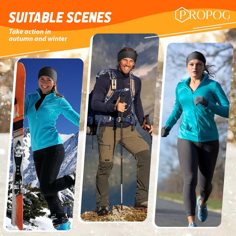PROPOG Headband Men Women Winter Pack of 2 Fleece Ear Warmers Women's Windstopper Earmuffs Hair Band Men's Warm Headband Headbands for Jogging Running Hiking Cycling and Motorcycle Driving