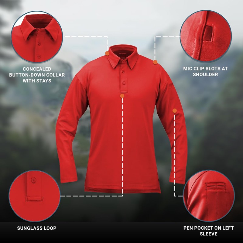 Propper Women's I.c.e. Performance Long Sleeve Polo, Red, Large