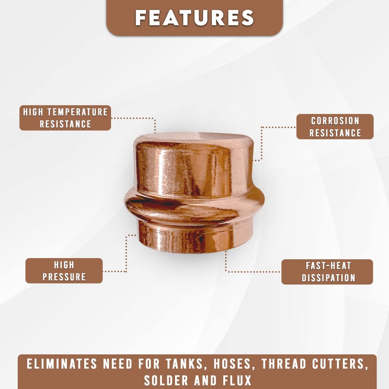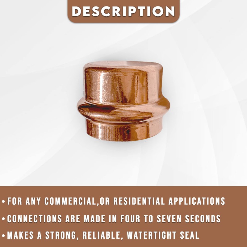 - [HIGH QUALITY & PERFORMANCE]- The ProPress Fitting Copper Cap Zero Lead Stop End is designed to meet the highest standards of quality and performance. It is manufactured in compliance with industry standards, ensuring that it is safe, reliable, and meets the needs of plumbing professionals and DIY enthusiasts alike.