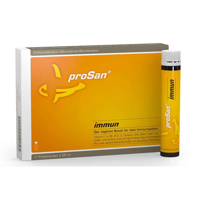 - Immune system: proSan immune contains vitamin C, A, B6, B12, D and folic acid as well as the trace elements zinc, selenium, iron and copper to support normal functioning of the immune system.