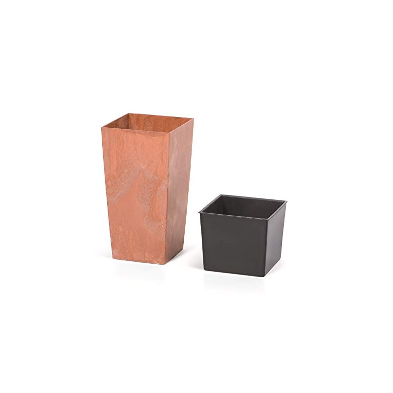 Prosperplast Matte Flower Pot Brick Colour - 12.6cm x 12.6cm x 20cm (LWH) 2L Capacity Plastic Planter Suitable for both Indoor and Outdoor Use