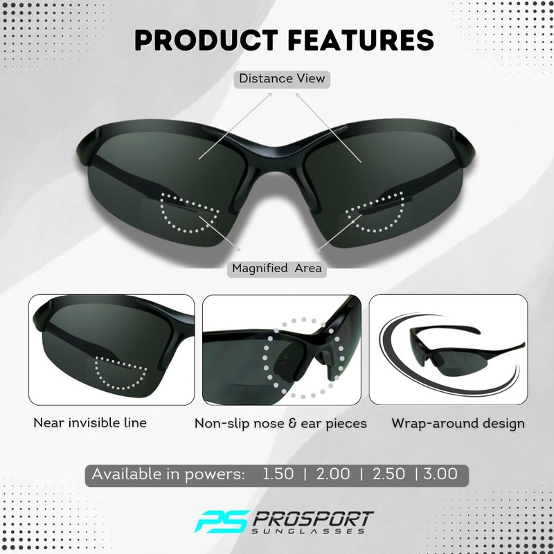 proSPORT Premium Quality Bifocal Reading Sunglasses UV400 Sun Reader Light Weight Wrap Around Sport Golf Cycling 1.50 2.00 2.50 3.00 5