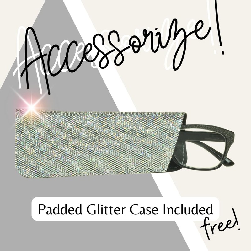 proSPORT Womens Reading Glasses 3.00 Full Lens Clear Black FrameChristmas Glitter Bling Shiny Crystal Rectangular