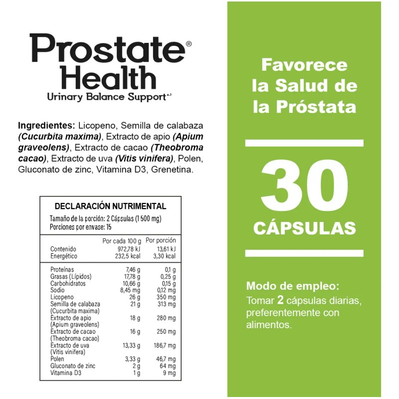 Ayuda a mantener la próstata sana, favoreciendo su buen funcionamiento y previniendo posibles problemas. -