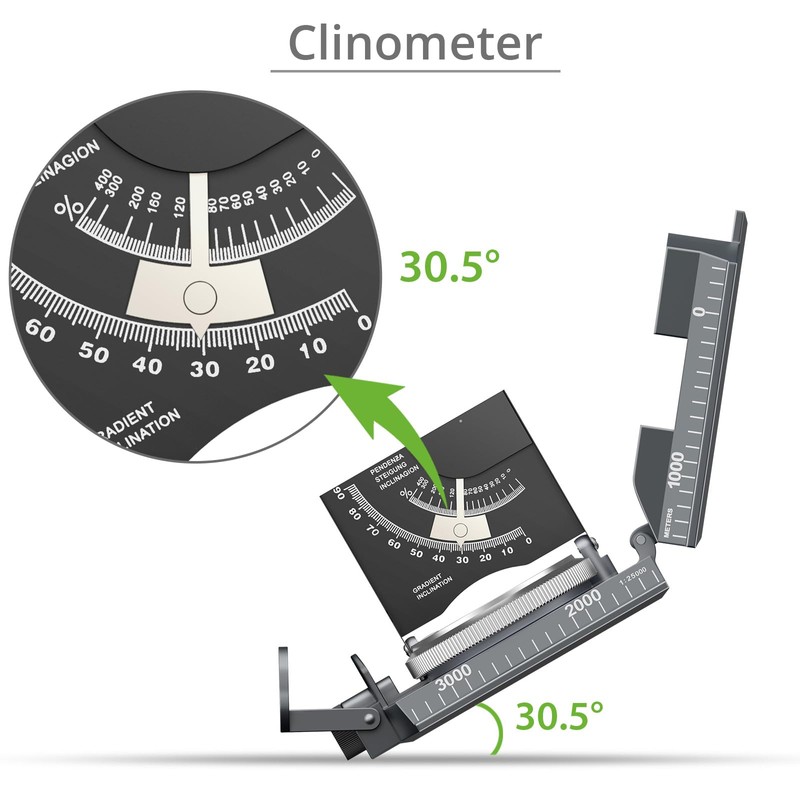 - Works as a compass and inclinometer - with the inclinometer you can also measure altitudes and gradients.
