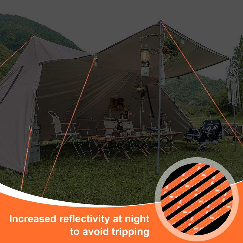 - High-quality material: the reflective guy ropes are made of high-strength polyester fibre material with precision manufacturing techniques, tightly braided and equipped with zinc alloy roller adjusters for robustness and wear resistance. The rope rope hook ratchet rope ratchet can withstand a pulling force of up to 68 kg/150 pounds.