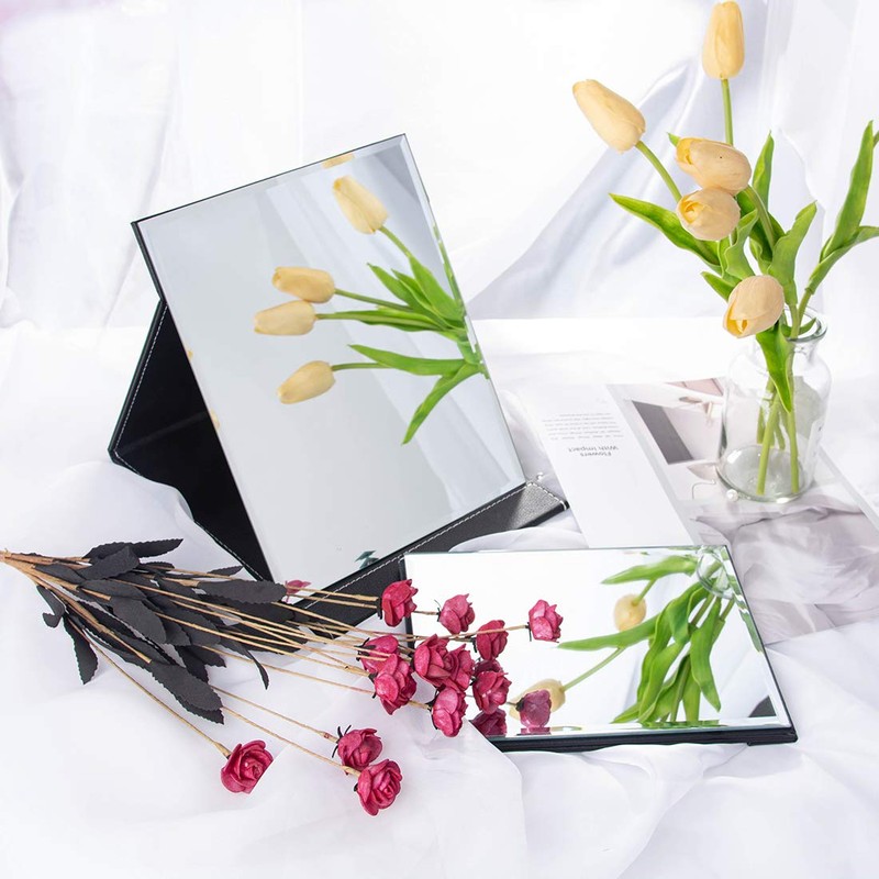 Protable - Espejo de piel sintética plegable para maquillaje de escritorio con soporte ajustable para uso personal, viajes (M, negro)