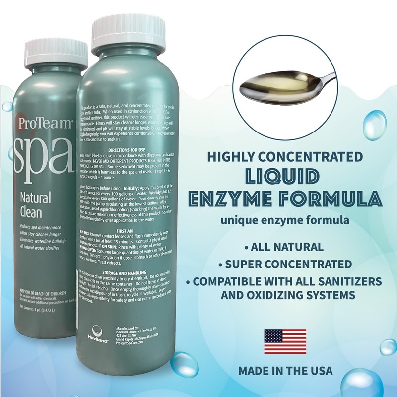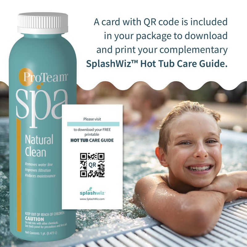 Proteam Spa Natural Clean - All Natural Hot Tub Water Clarifier Hot Tub Clarifier - Spa Enzymes for Hot Tub with SplashWiz Hot Tub Chemicals Care Guide - Made in USA (1 pt)