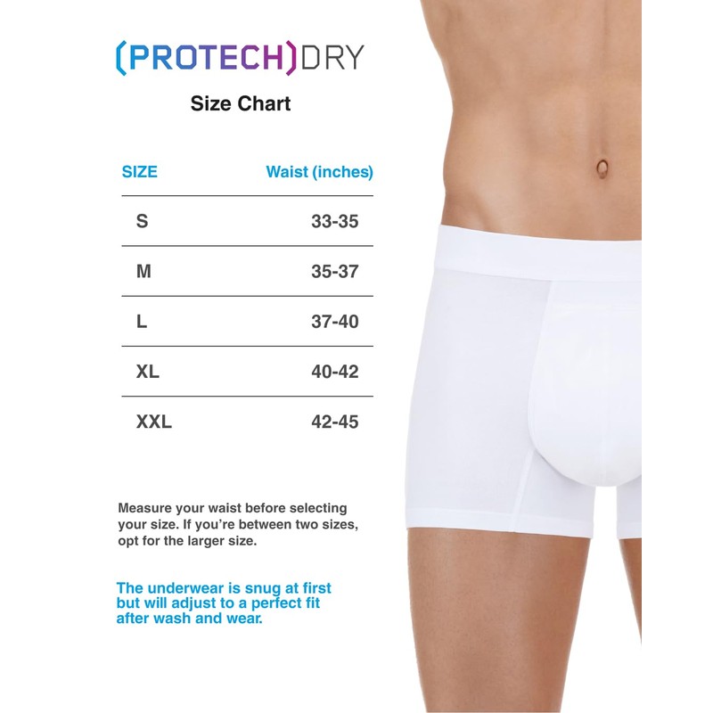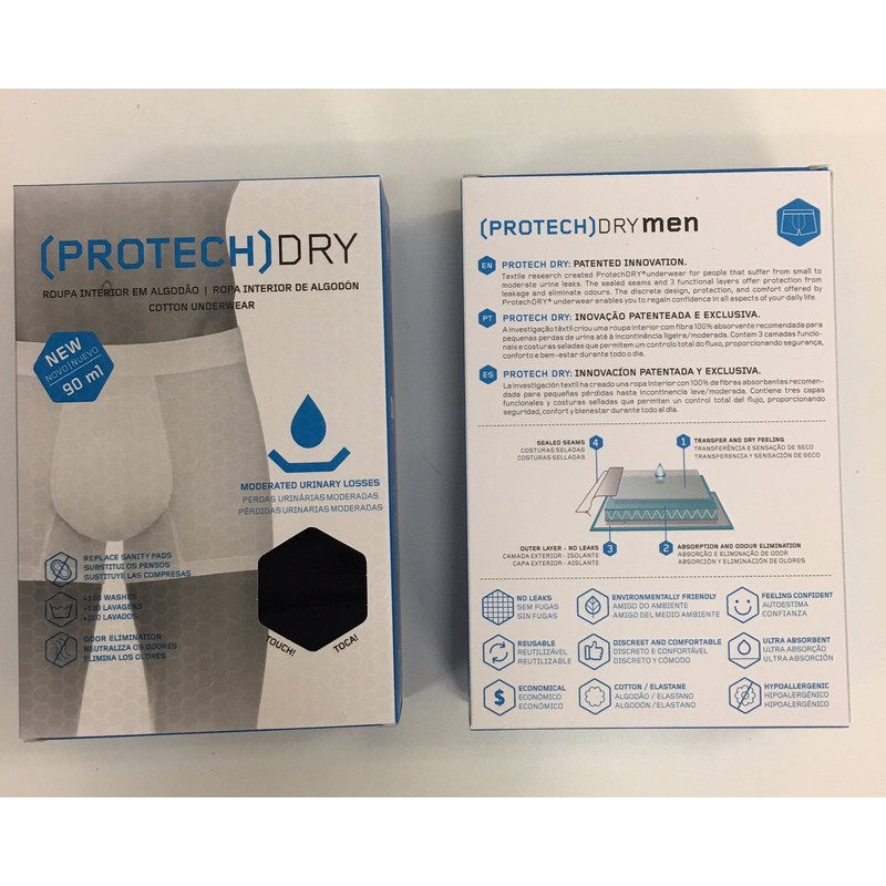 • BUILT IN ABSORPTION AREA - WASHABLE AND REUSABLE- Withstand at least 100 washes - 1 PROTECHDRY = 100 Disposable Underwear. PERFECT FIT & SEALED SEAMS - 5 sizes available for a perfect form fit. Innovative technology which prevents liquids from leaking through.