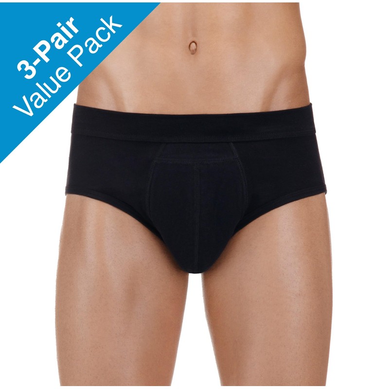 PROTECHDRY Washable & Reusable Urinary Incontinence Cotton Brief Underwear for Men - 3 Pair Value Pack (Black, XX-Large)