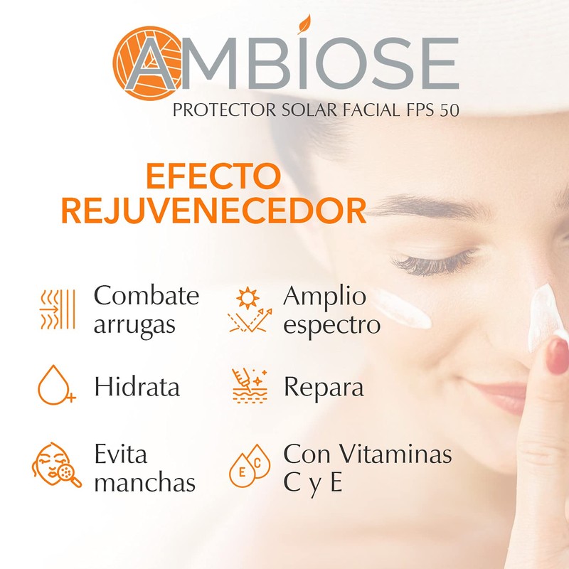 Protector Solar Facial Rejuvenecedor Ambiose, FPS 50, Efecto Mate, Hidratante, Rostro, Todo Tipo de Piel, Toque Seco, Uso Diario, Ultraligero, No graso